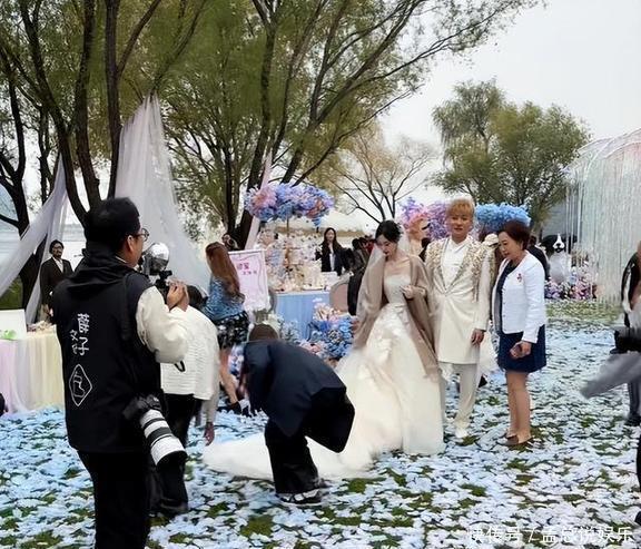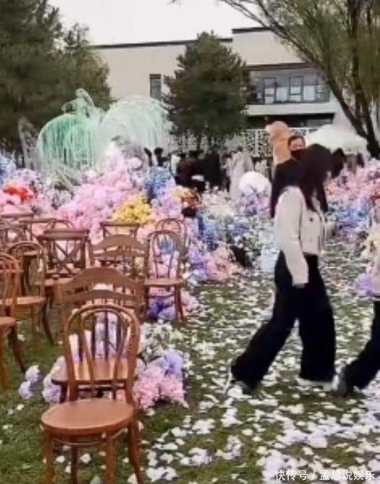 说到黄子韬的婚礼现场,感觉应该是在海边,周围摆了好多五颜六色的花,但是有些网友觉得布置得有点俗气。主要就是乱得不行,草坪上连条地毯都没有,各种道具扔得到处都是,背景墙看起来快要垮了。