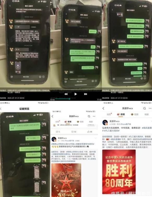 事发后几人迅速建群统一口径,商量着把单方面殴打说成“互殴”,还编造“情感纠纷挑衅”的谎言。 聊天记录里甚至有人透露,找了“部队里的关系”想干扰调查,这番操作刷新了大家对艺人底线的认知。 最讽刺的是演员吴崇轩,今年建军节和抗战胜利日时,还在社交平台转发拥军内容,配文“致敬最可爱的人”。